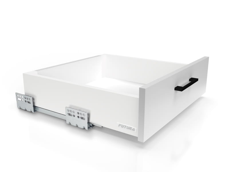 Nowoczesna szuflada FUTURA EVO  Biała z regulacją 3D, cichym domykiem, 40 kg ładowności, pełny wysuw ora  równomierna praca prowadnic na 80 000 cykli.